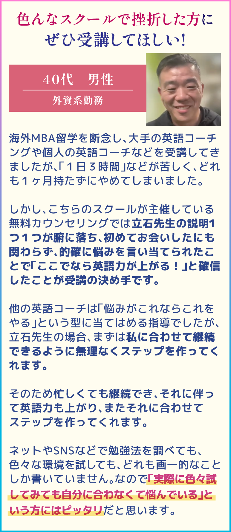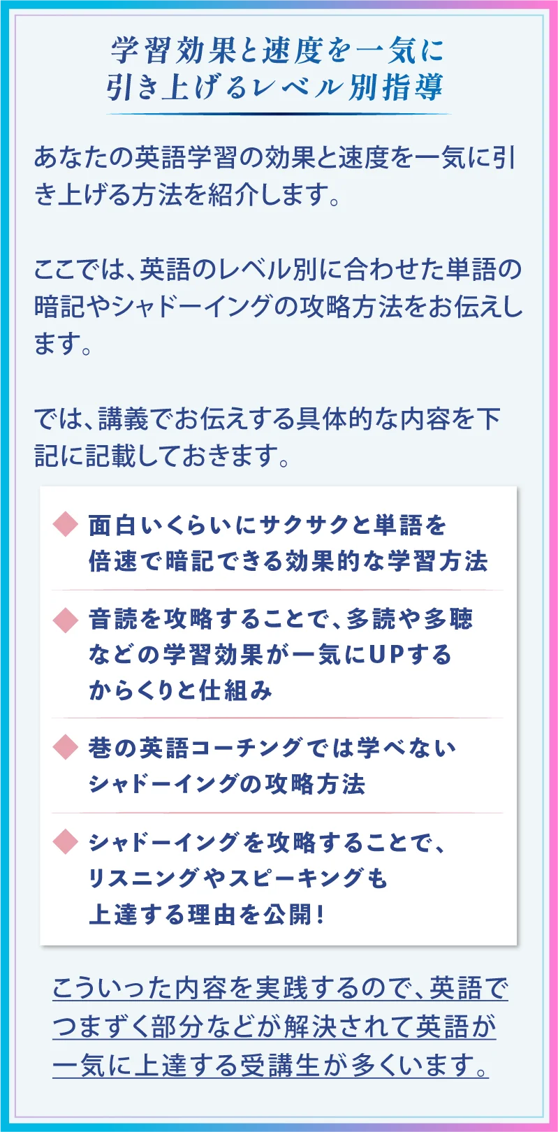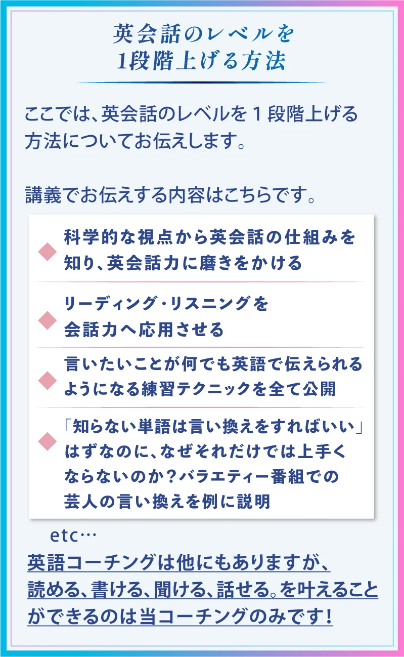 あなたが、英会話や他の英語コーチングでは英語が上達しなかった...