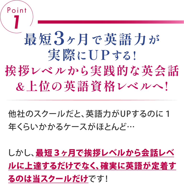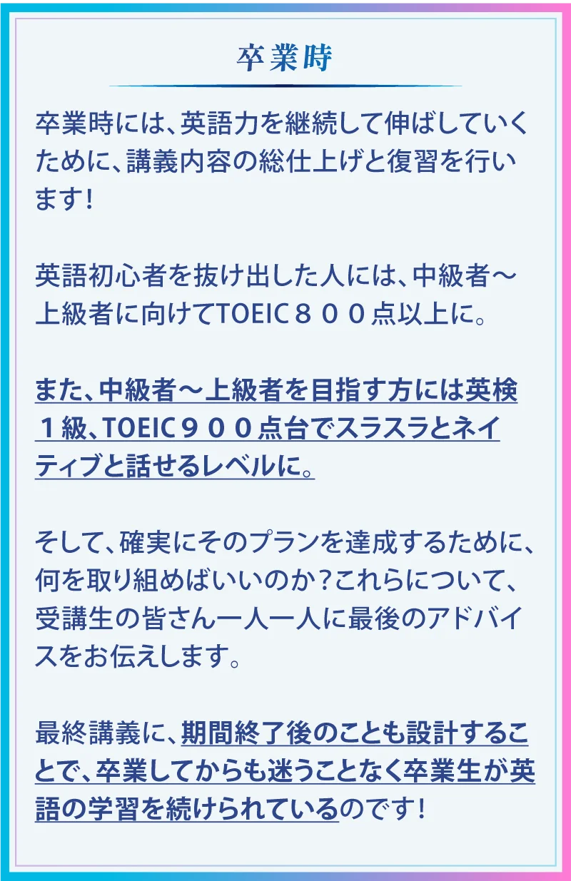 そこで、本スクールがロードマップで英語力自体を伸ばしながら並行して「ある力」を鍛えていきます。