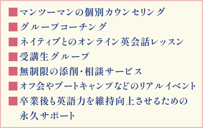 この「英語対応力」についての詳細はオンラインセミナーでお伝えしますが、巷の英語コーチングや英会話スクールとは全く違うことはなんとなく理解できたと思います。